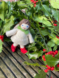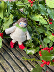 A lovely hand-crafted Christmas angel with a red dress, fair curled hair and yellow shoes. Perfect to decorate your Christmas tree with.
