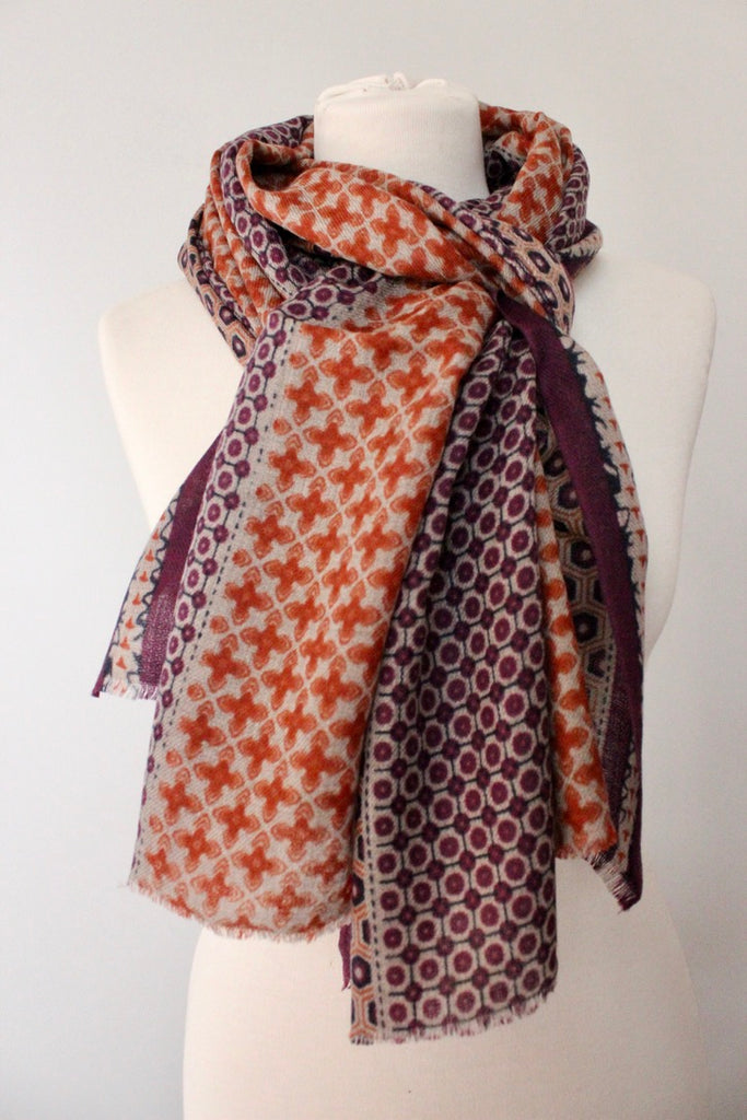 The LV variation uses a beautiful geometric design in vertical rows . The design has a business like look and is also very suitable for the male scarf wearer.