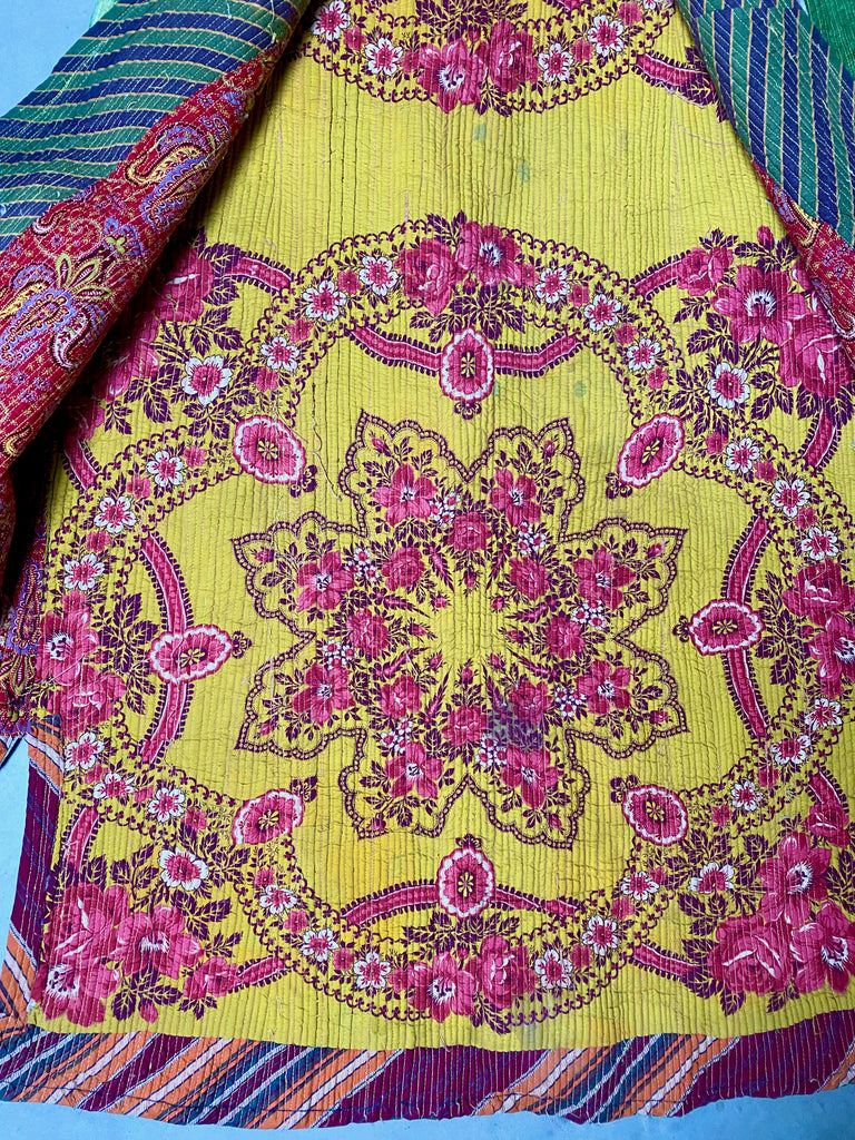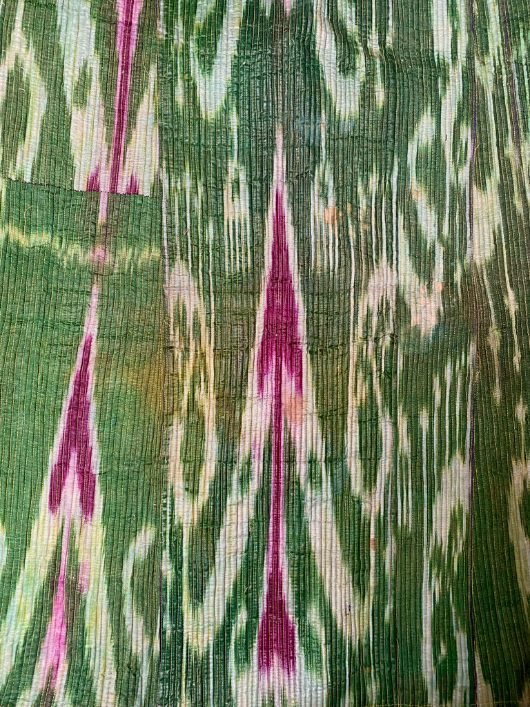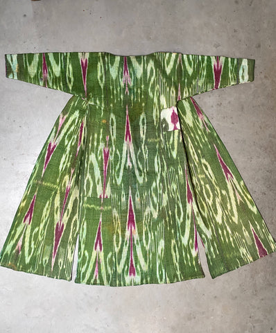 This green Uzbek ikat coat has an amazing lining of russian cotton.