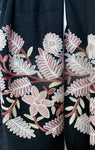 Zwarte sjaal met een rand van bloemenkasjmierborduurwerk